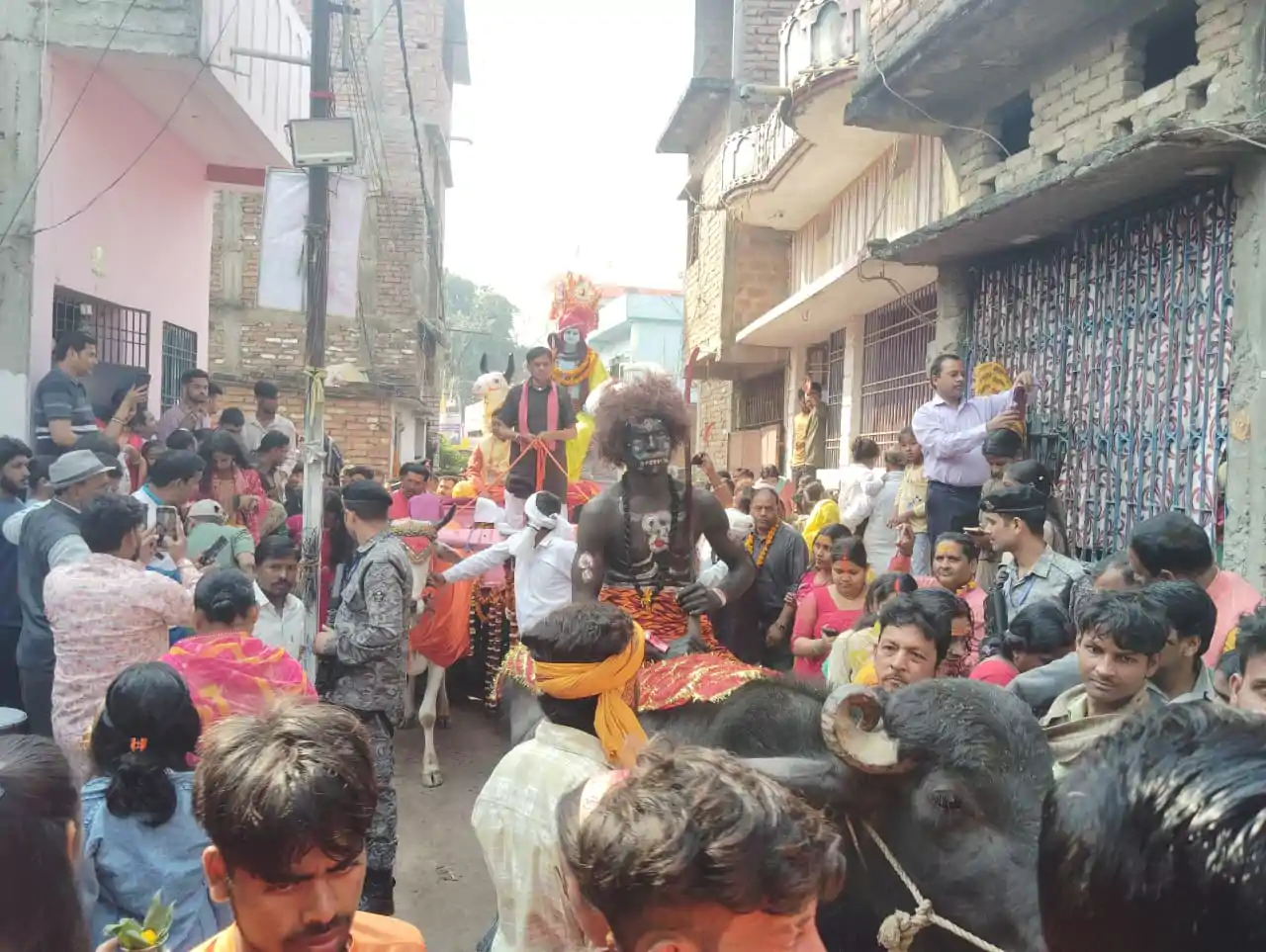 बारात से पूर्व उन्होंने मंदिर में विधि-विधान से जलाभिषेक और विशेष आरती की। इसके बाद भव्य शोभायात्रा निकली, जिसमें हजारों श्रद्धालु शामिल हुए। ‘भूत-प्रेत’ की टोलियाँ, रंग-बिरंगी झांकियाँ, बैंड-बाजे और धार्मिक प्रतीकों से सजी झलकियों ने माहौल को आध्यात्मिक उत्सव में बदल दिया। पूरा हाजीपुर “हर-हर महादेव” के जयघोष से गूंज उठा।