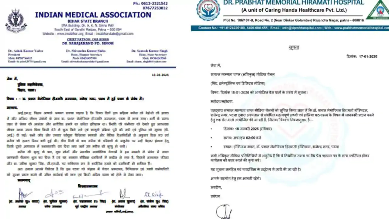 Patna NEET student death: नीट छात्रा मौत कांड में नया मोड़, प्रभात मेमोरियल अस्पताल पर बढ़ा दबाव, IMA ने DGP से मांगी डॉक्टर की सुरक्षा, डॉ सतीश ने बुलाया प्रेसवार्ता