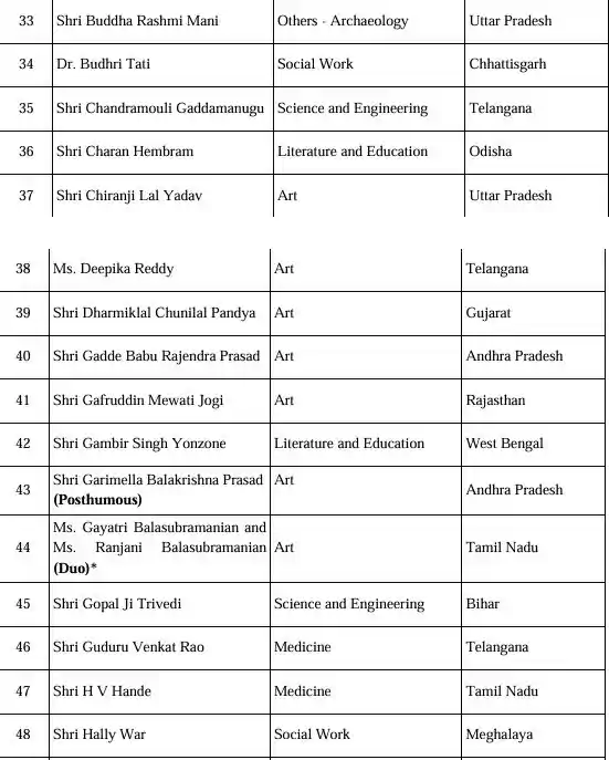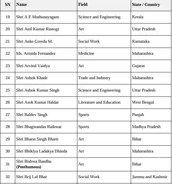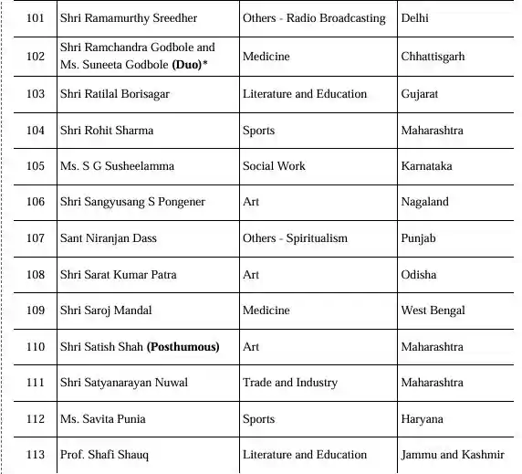 वहीँ कुल 113 हस्तियों को पदम् श्री देने का ऐलान केंद्र सरकार ने किया है. जिनमें ये हस्तियाँ शामिल हैं....