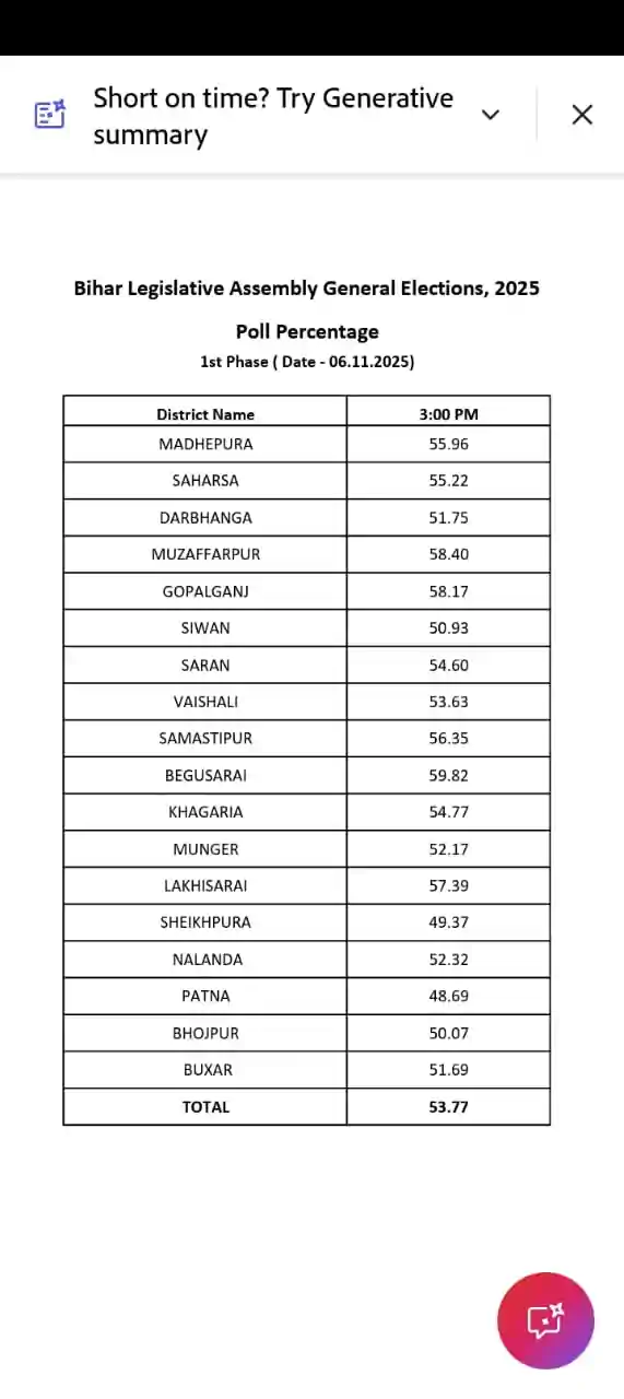 Bihar Election 2025: बिहार चुनाव में दोपहर 3 बजे तक 53.77% हुआ मतदान, बेगूसराय में सबसे अधिक मतदान, ये जिला पिछड़ा