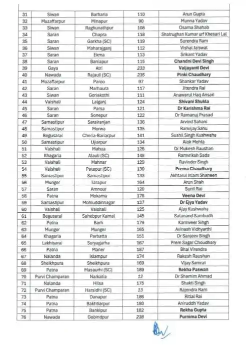 सबसे चर्चित नामों में छपरा विधानसभा सीट से भोजपुरी सुपरस्टार खेसारी लाल यादव का नाम प्रमुख है। पहले इस सीट से राजद ने उनकी पत्नी चंदा देवी को टिकट दिया था, लेकिन तकनीकी कारणों और दस्तावेज़ी पेच के चलते अब खेसारी लाल यादव स्वयं राजद के सिंबल पर चुनाव लड़ेंगे। इस फैसले ने छपरा की राजनीति में सनसनी फैला दी है, जहां अब चुनावी जंग स्टार पावर और जनाधार दोनों पर टिकी होगी।