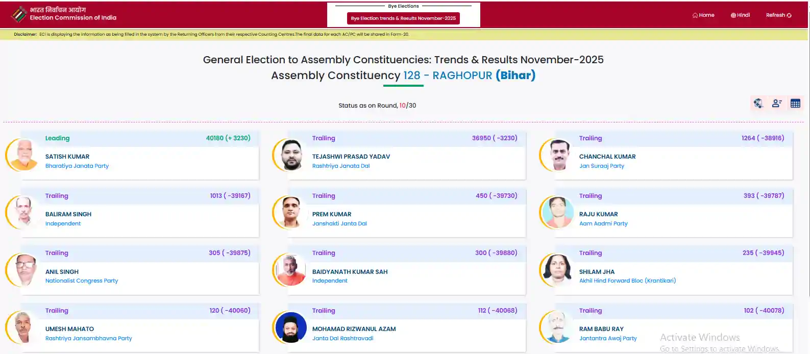 Bihar Election Counting: महागठबंधन के सीएम फेस तेजस्वी यादव को बड़ा झटका, 2 हजार से अधिक वोटों से हुए पीछे, इतने राउंड की गिनती पूरी