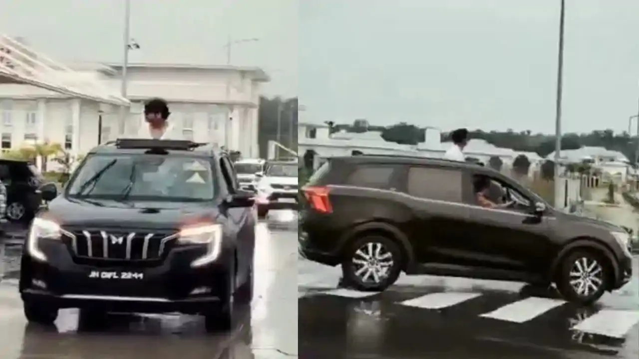 मंत्री के बेटे ने तोड़े ट्रैफिक नियम, सनरूफ से निकलकर बनाया 'रील'