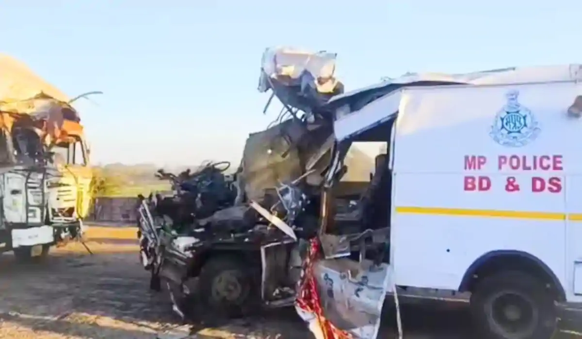 Bhopal - मध्य प्रदेश के सागर जिले में नेशनल हाईवे-44 पर बुधवार सुबह एक दर्दनाक सड़क हादसा हो गया। बांदरी के पास तेज रफ्तार कंटेनर और पुलिस के बम निरोधक दस्ते (BDDS) के वाहन में आमने-सामने की भीषण टक्कर हो गई। टक्कर इतनी जबरदस्त थी कि पुलिस वाहन के परखच्चे उड़ गए और 4 जवानों की मौके पर ही मौत हो गई।