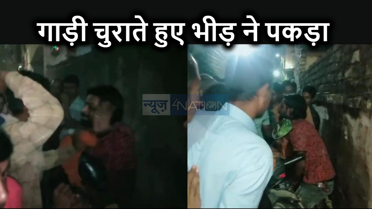 PATNA : राजधानी में वाहन चोरी की घटनाओं पर लगाम लगाने के लिए पटना पुलिस चाहे लाख दावा करें वाहन चोर गिरोह के सदस्य दिन दहाड़े और शाम ढलते घटनाओं को अंजाम देकर पुलिस के लिए कड़ी चुनौती देते नजर आ रहे हैं। ताजा मामला पटना के कदमकुआं थाना क्षेत्र का है। जहां से एक वाहन चोर गिरोह के सदस्य को स्थानीय लोगों ने रंगे हाथ धर लिया और ऑन द स्पॉट जमकर चोर की पिटाई की है।
