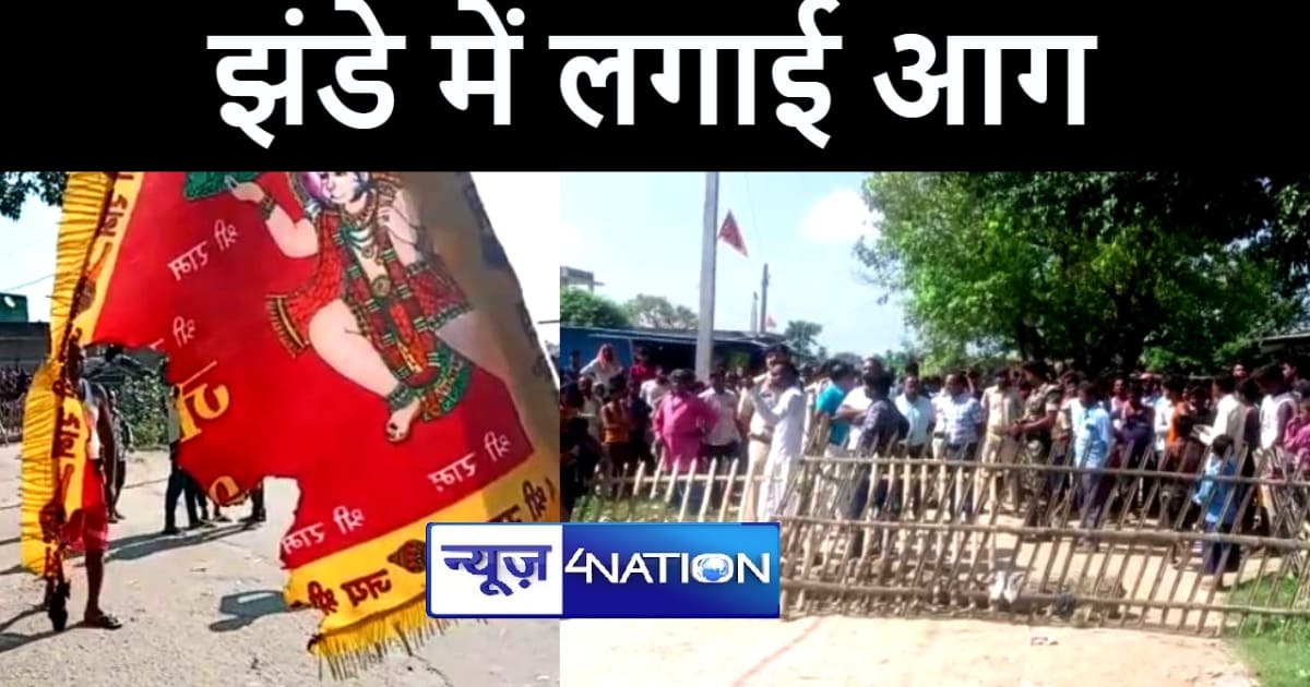 बेतिया में असामाजिक तत्वों ने हनुमान जी के झंडे में लगाई आग, आक्रोशित लोगों ने किया सड़क जाम