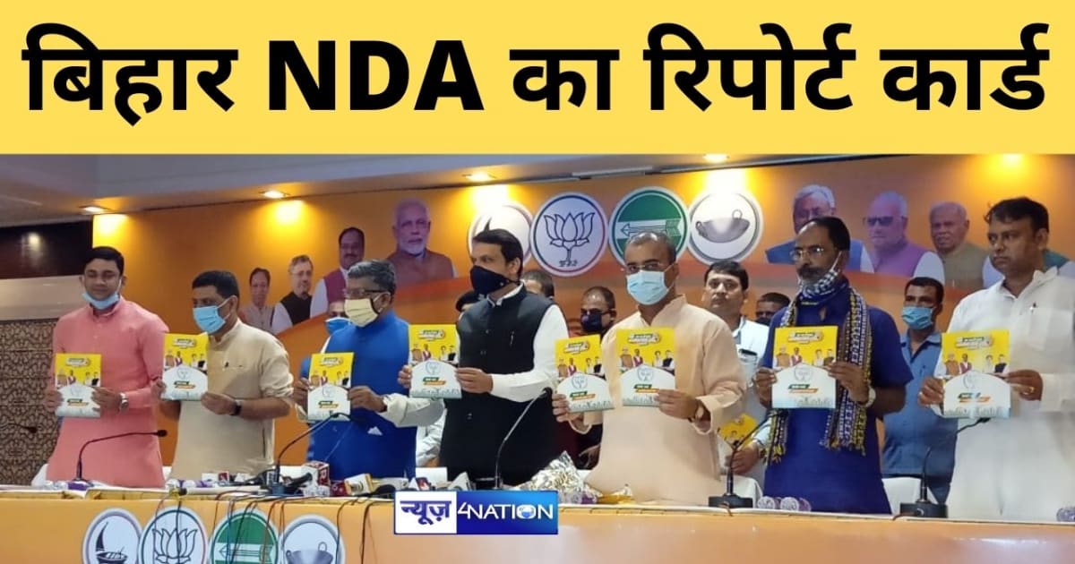 बिहार NDA ने जारी किया रिपोर्ट कार्ड, देवेन्द्र फड़नवीस समेत सहयोगी दल के नेता रहे मौजूद