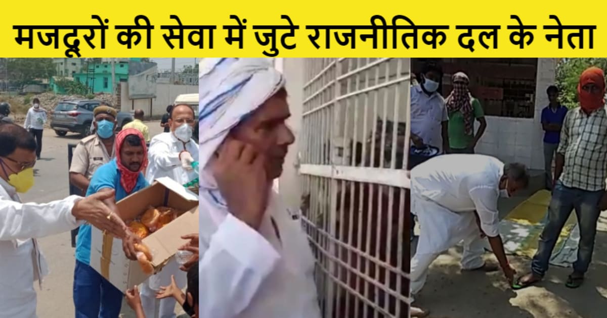 मजदूरों की सेवा में जुटे पॉलिटिकल पार्टी के नेता,कोई भूखों को भोजन दे रहा तो कोई पैरों में पहना रहा चप्पल,वहीं JDU MLAअफसरों को कोस रहे
