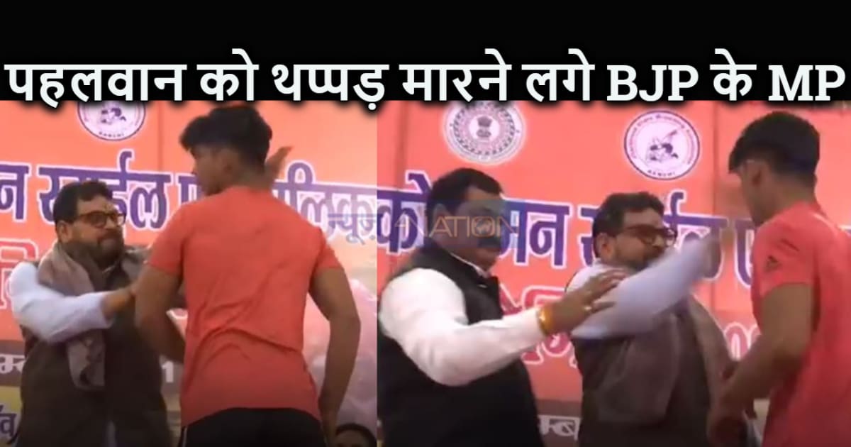 मुख्य अतिथि बनकर आए बीजेपी के सांसद ने मंच पर ही पहलवान को जड़ दिया थप्पड़, वीडियो हुआ वायरल