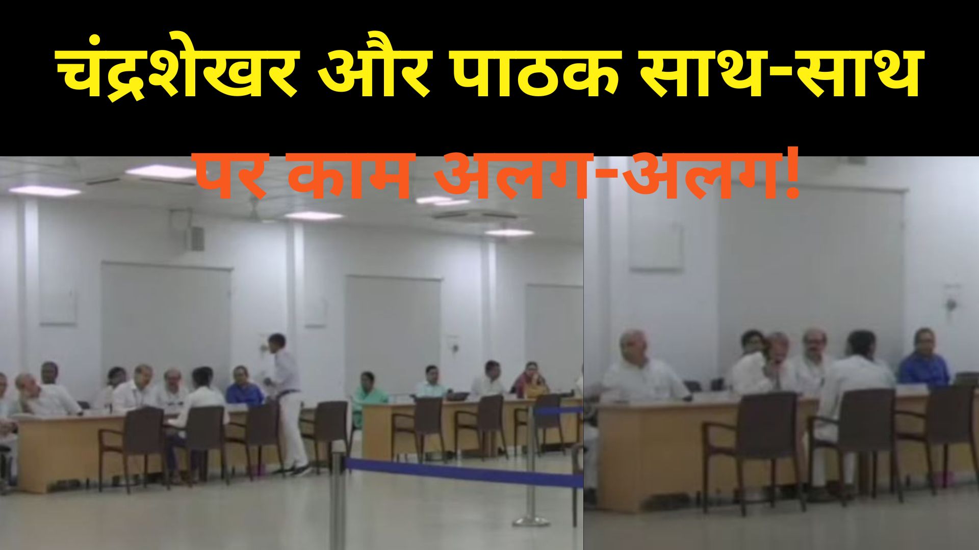 'चंद्रशेखर' और 'पाठक' साथ-साथ पर काम अलग-अलग.... मंत्री जी बातों में लीन थे तो ACS काम में, दिखी वो तस्वीर....