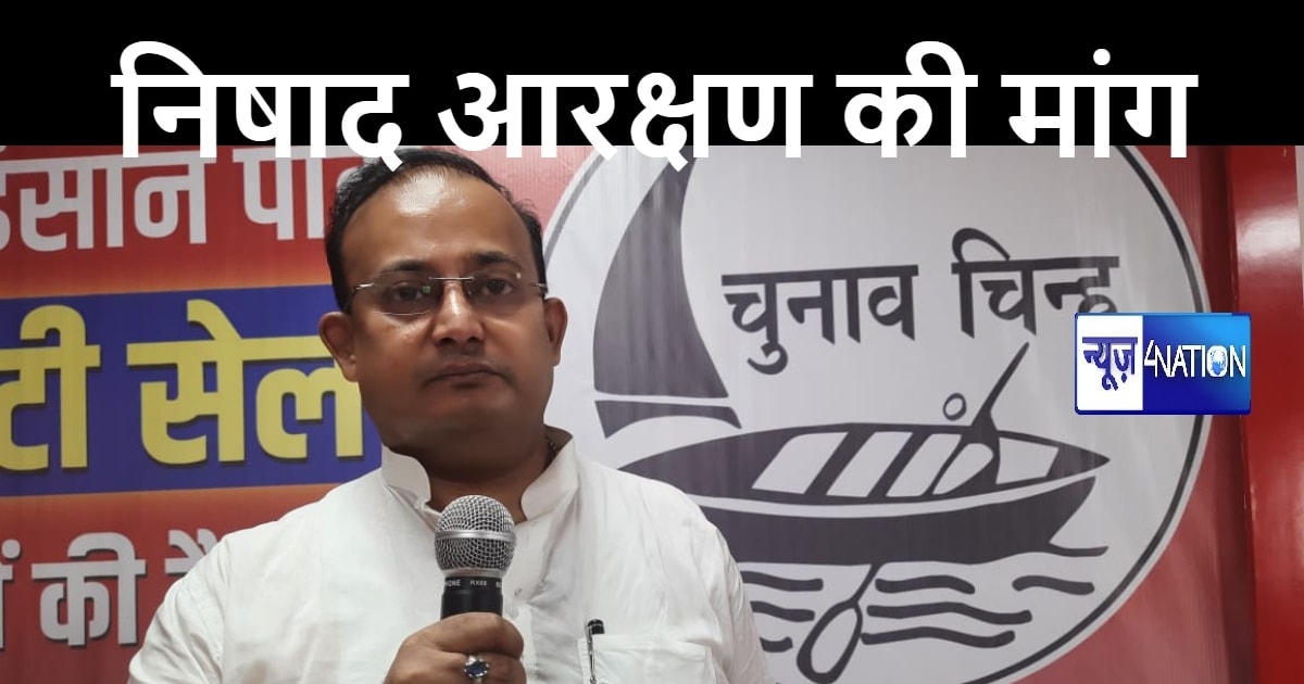 पटना. विकासशील इंसान पार्टी ने केंद्र सरकार से निषाद आरक्षण देने और बिहार को विशेष राज्य का दर्जा दिए जाने की मांग की है। पार्टी के राष्ट्रीय प्रवक्ता देव ज्योति ने गुरुवार को एक बयान जारी कर कहा कि बिहार के उत्थान के लिए ये दोनों मांगें बहुत अहम है और केंद्र सरकार इनपर ढुलमुल रवैया अपना रही है।