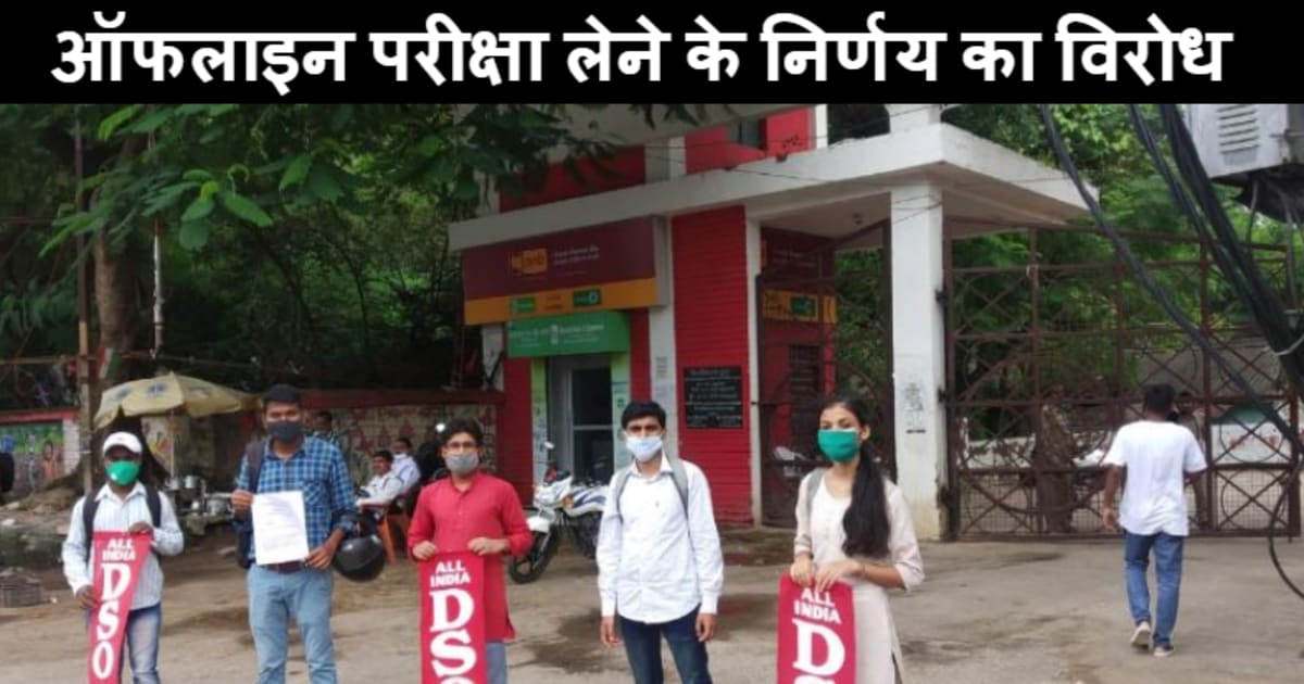 Ranchi : कोरोना संकट के बीच रांची विश्वविद्यालय द्वारा ऑफलाइन एग्जाम लिए जाने का फैसला लिया गया है। इधर इस फैसले के विरोध में ऑल इंडिया डीएसओ रांची जिला कमेटी की ओर से प्रदर्शन किया गया।