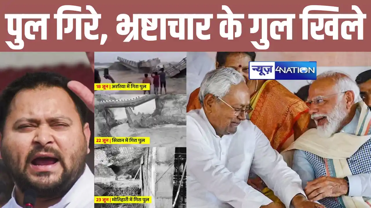PATNA: "पहले पुल गिरता था जी? अब हम लोग एक साथ आ गए है तो पुल गिर रहे हैं..... "भाइयों-बहनों, चुपचाप पुल गिरते हुए देखो नहीं तो कथित जंगलराज आ जाएगा.... बिहार में 6 दिनों के भीतर 3 पुल गिरने पर नेता प्रतिपक्ष तेजस्वी यादव ने राज्य की डबल इंजन सरकार को कटघरे में खड़ा किया है। तेजस्वी यादव ने ना सिर्फ सरकार को घेरा है बल्कि उन्होंने यह भी बताया है कि पुल गिरने के मामले को लेकर बिहार के मुख्यमंत्री नीतीश कुमार और प्रधानमंत्री नरेंद्र मोदी क्या प्रतिक्रिया देंगे।