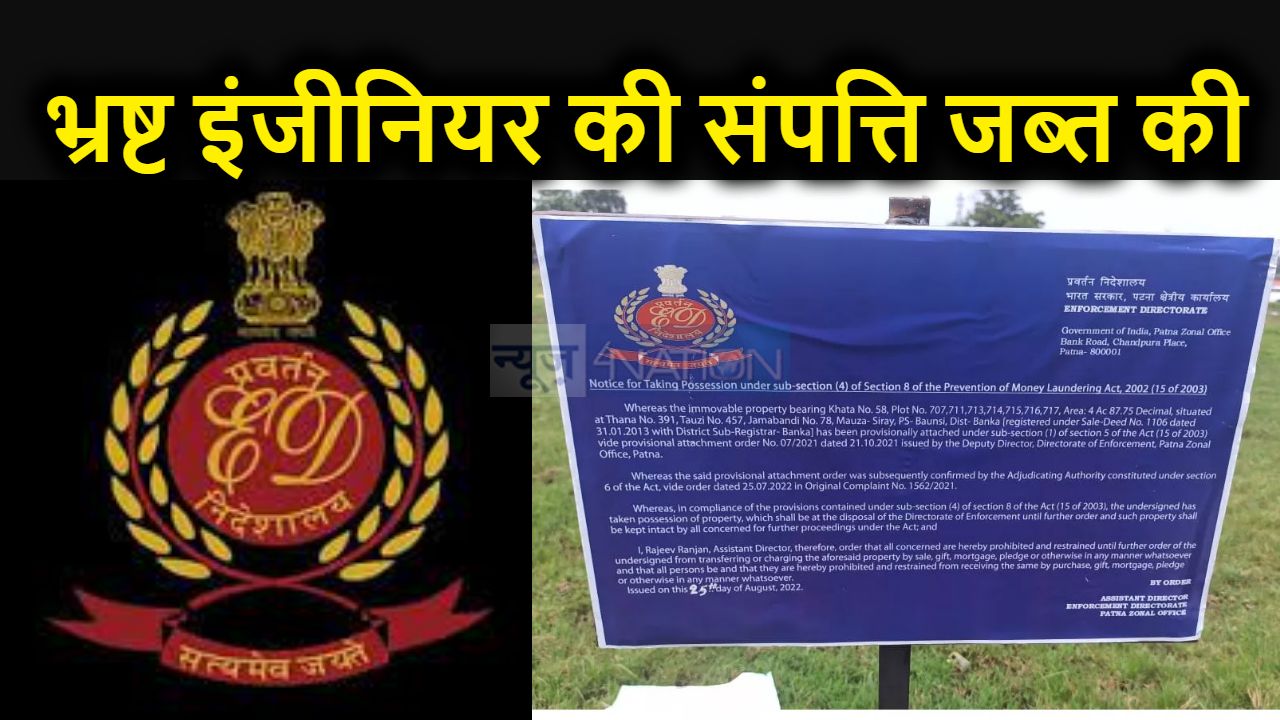 बिहार में ED की कार्रवाई, वैशाली में असिस्टेंट इंजीनियर की करोड़ों की संपत्ति जब्त