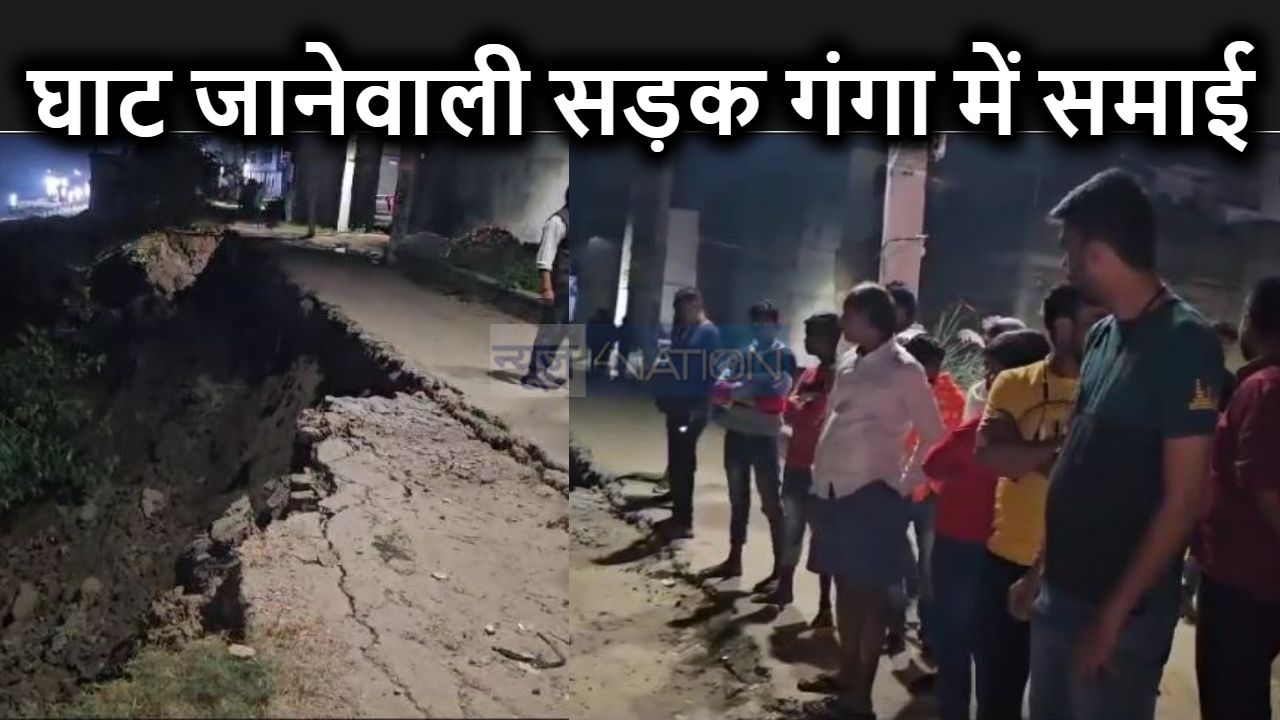 गंगा उफान पर : भागलपुर में 50 मीटर दूरी तक की पीएससी सड़क नदी में समाई, घाट किनारे पहुंचे लोगों में भय का माहौल