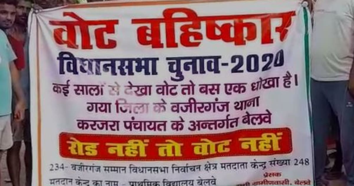 गया : गया जिले के वजीरगंज विधानसभा क्षेत्र के करजरा पंचायत के बेलवे गांव के ग्रामीणों ने चुनाव आते ही वोट का बहिष्कार को लेकर प्रदर्शन किया गया। विकास की रोशनी से कोसों दूर करजरा पंचायत के बेलवे गांव में सड़क के निर्माण नहीं होने से नाराज ग्रामीणों ने रोड नहीं तो वोट नहीं का तख्ती बैनर लेते हुए विरोध प्रदर्शन किया.