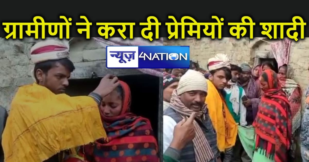 लड़की के पिता ने बाहर से कमरे का दरवाजा बंद कर गांववालों को मौके पर बुला लिया। जिसके बाद रविवार को मुखिया माला देवी, पूर्व मुखिया राजकिशोर राय, राजेंद्र राय, पूर्व सरपंच विनोद राय, मोख्तार राय ने पहल करते हुए गांव के मंदिर ले जाकर प्रेमी-प्रेमिका की शादी करा दी।