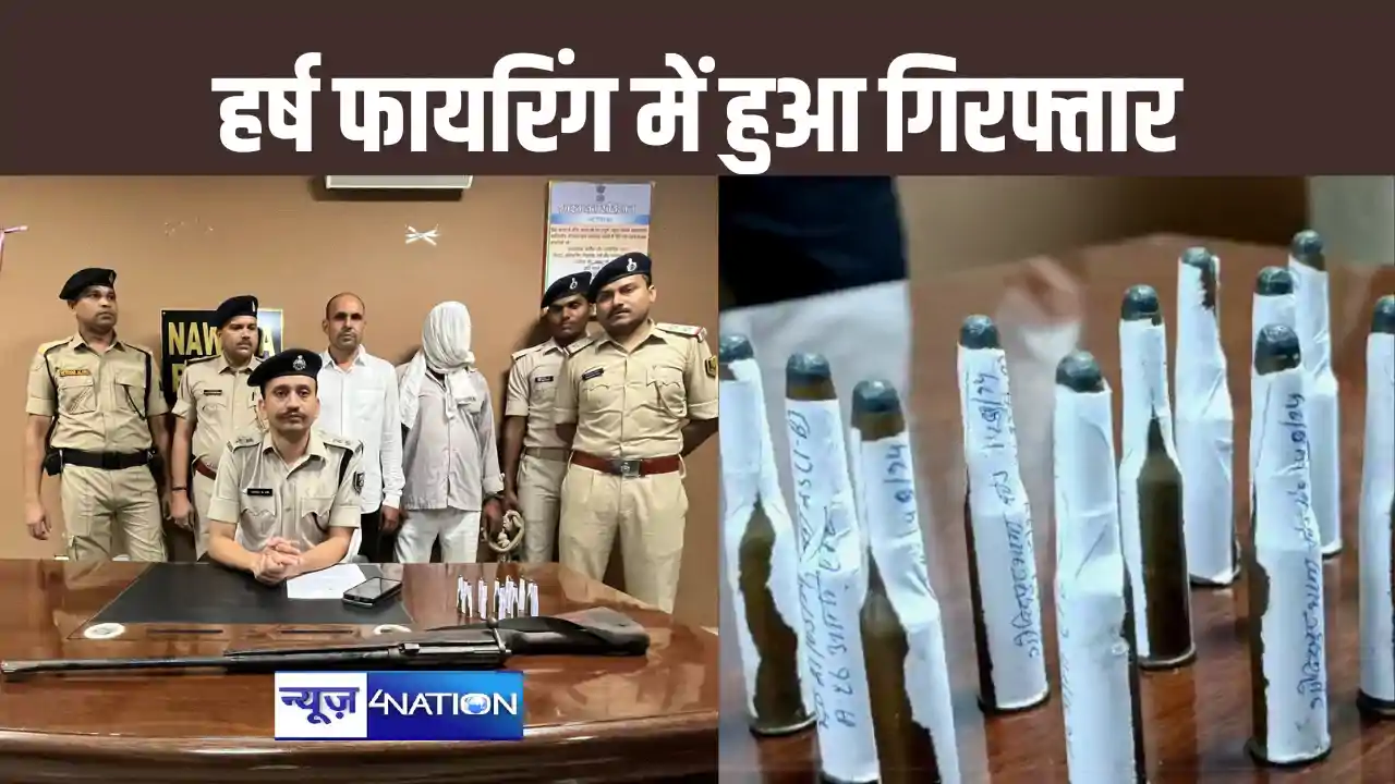 NAWADA : हर्ष फायरिंग क़े आरोप में एक अभियुक्त बंदूक और कारतूस क़े साथ चढ़े पुलिस क़े हत्थे नवादा में हर्ष फायरिंग करने वाले एक अभियुक्त क़ो एक देसी बंदूक और 13 जिंदा कारतूस क़े साथ गिरफ्तार किया है। यह घटना जिले के गोविन्दपुर थाना क्षेत्र की है। गिरफ्तार युवक का नाम रामजन्म यादव बताया गया है।