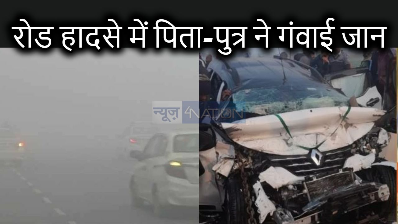 घने कोहरे के कारण सड़क किनारे खड़े ट्रक से टकरा गई तेज रफ्तार कार, हादसे में पिता-पुत्र की मौत