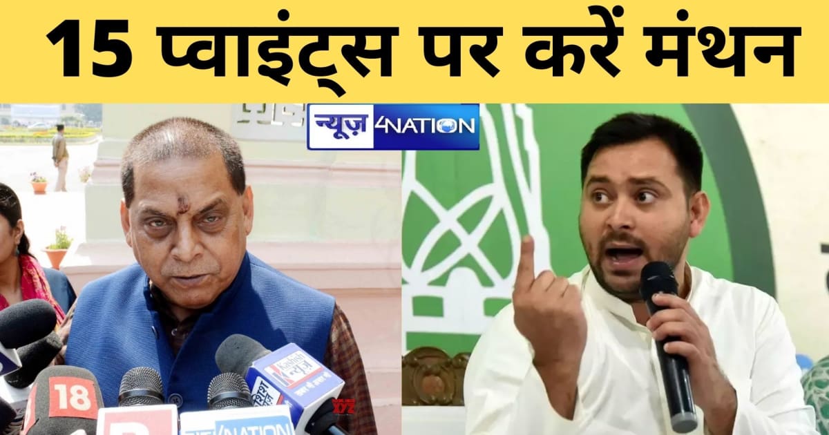 नीरज कुमार ने मीटिंग से पहले तेजस्वी यादव से 15 सवाल पूछे हैं.उन्होंने कहा है कि आज RJD की समीक्षा बैठक में संभवतः इन बिंदुओं पर मंथन होगा, कि:-
