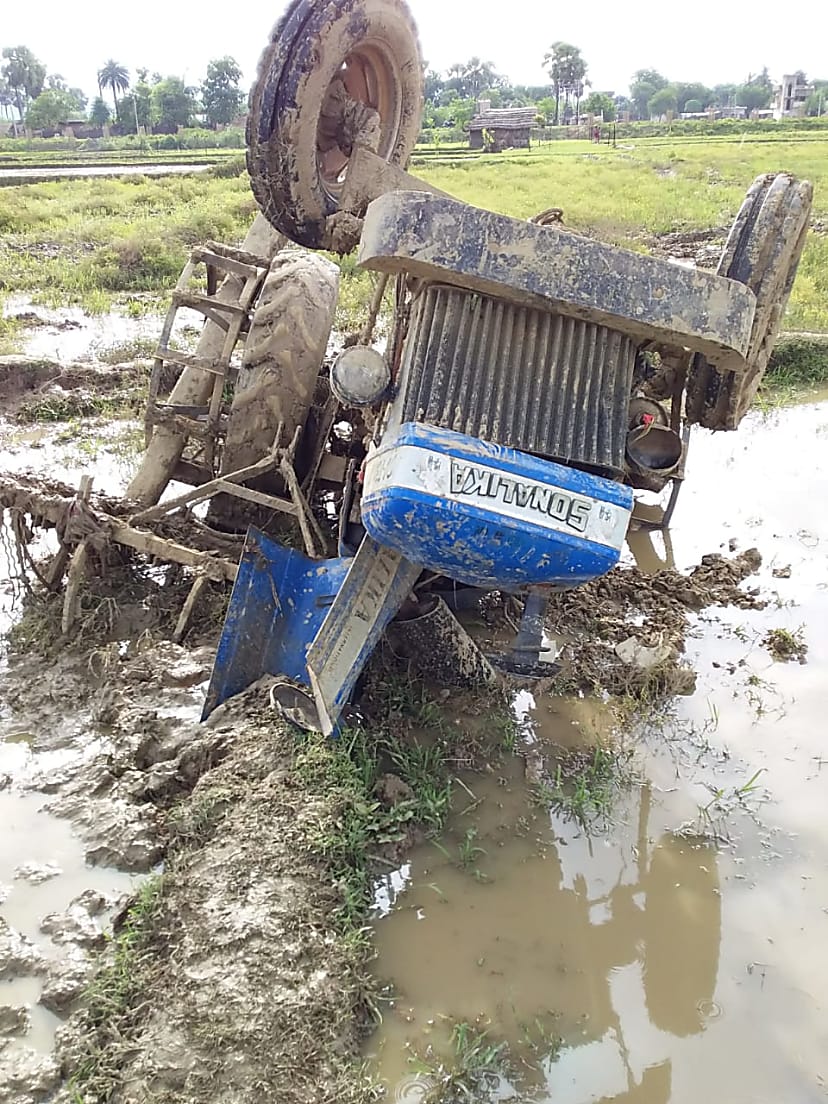 ज्यादा एक्सलेटर देनें के कारण ट्रैक्टर पलटा