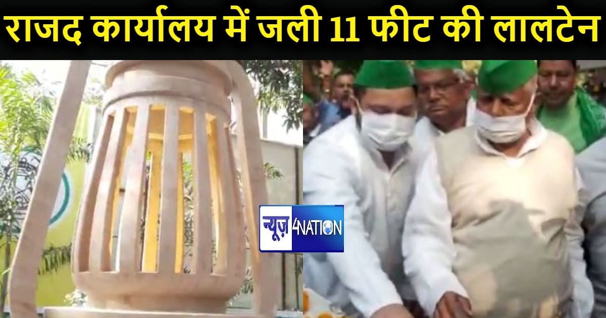 राजद कार्यालय में जली संगमरमर से बनी 11 फीट की लालटेन, लालू बोले आंधी-तूफान में भी नहीं बुझेगी