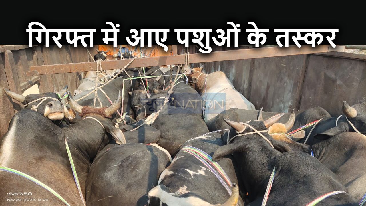 ट्रेलर में ठूंस-ठूंस कर तस्करी के लिए ले रहे थे दो दर्जन से अधिक गाय-बैल, भागने के क्रम में चढ़े SSB और पुलिस के हत्थे