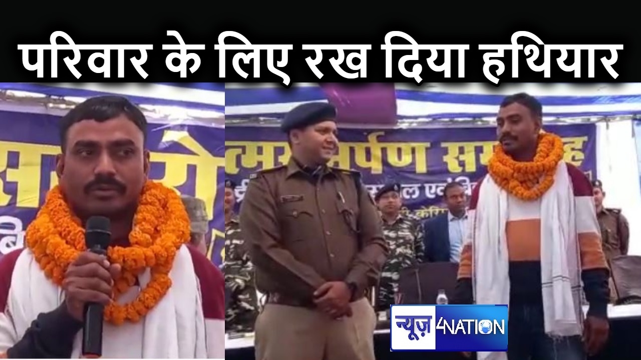 बिहार-झारखंड में दर्जनों कांडों में शामिल15 लाख के इनामी नक्सली ने हथियारों के साथ किया आत्मसमर्पण, कहा- बच्चों और परिवार के लिए उठाया यह कदम