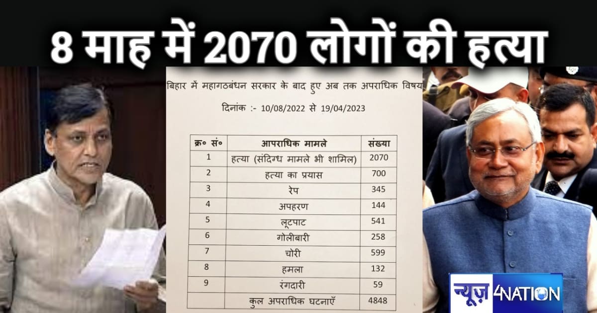 महागठबंधन की सरकार बनने के बाद बिहार में औसतन हर माह 250 हत्याएं, केंद्रीय गृह राज्यमंत्री ने पेश किया रिपोर्ट कार्ड