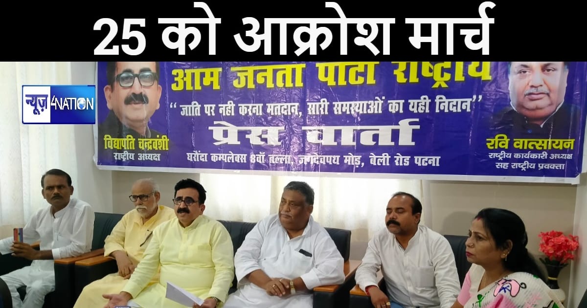 25 अगस्त को आम जनता पार्टी राष्ट्रीय का आक्रोश मार्च, विद्यापति चन्द्रवंशी बोले- महागठबंधन सरकार के मंत्रिमंडल में अतिपिछड़ों को नहीं मिली समुचित भागीदारी