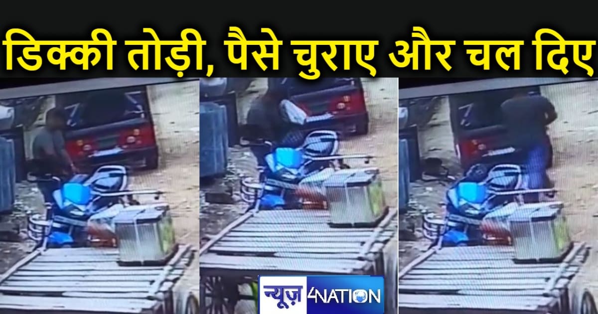 बाइक की डिक्की तोड़ कर उड़ाए एक लाख रुपए, सीसीटीवी में दिख गई चोरी की पूरी घटना