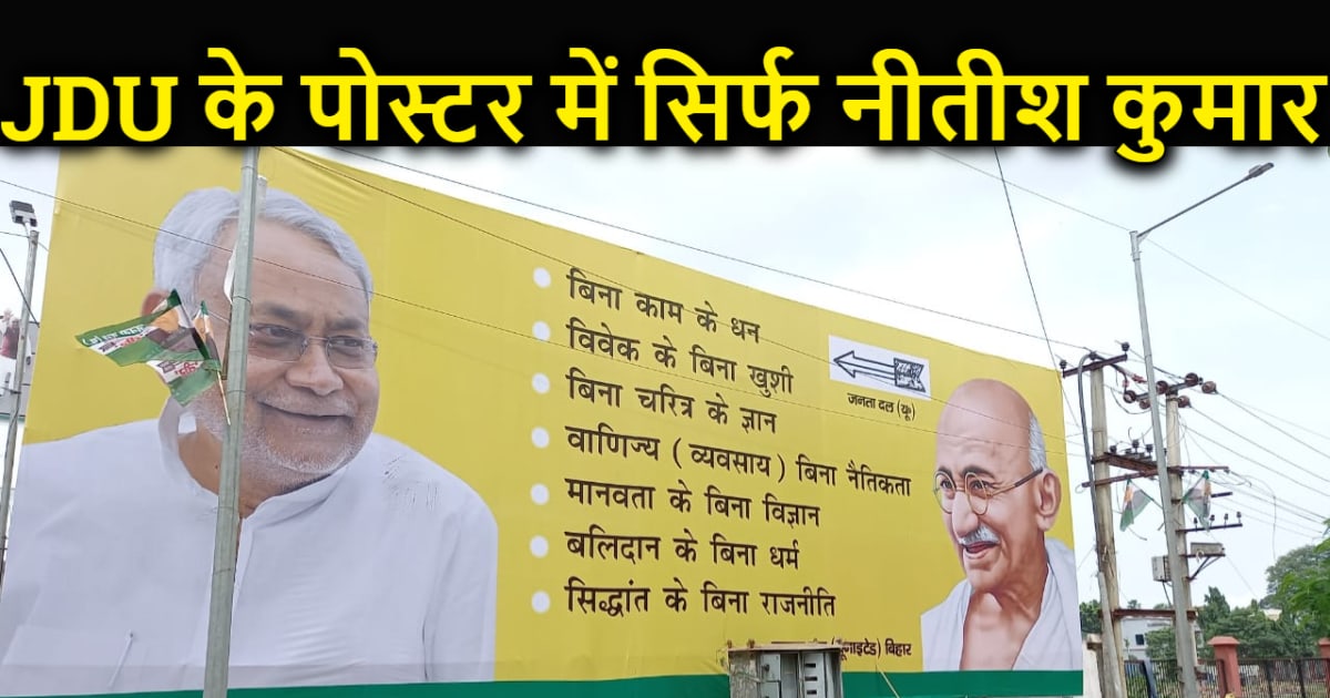 बता दें कि जनता दल यूनाइटेड में राष्ट्रीय परिषद की बैठक 29 अगस्त को होनी है। 28 अगस्त को पदाधिकारियों की बैठक है। जिसको लेकर पार्टी मुख्यालय में यह पोस्टर लगाए गए हैं। लेकिन पोस्टर मे न तो पहले की तरह ललन सिंह नजर आ रहे हैं न आरसीपी सिंह और ना ही उपेंद्र कुशवाहा है। जबकि पिछले कुछ दिनों से यह तीनों पार्टी के पावर सेंटर बने हुए थे। लेकिन सीएम नीतीश कुमार ने बता दिया है कि जब तक वह हैं, पार्टी में कोई और पावर सेंटर नहीं बन सकता है। पोस्टर में पार्टी के सारे दिग्गज नेताओं को दरकिनार कर यह जाहिर कर दिया गया है कि नीतीश कुमार की पकड़ अब भी सबसे मजबूत है।