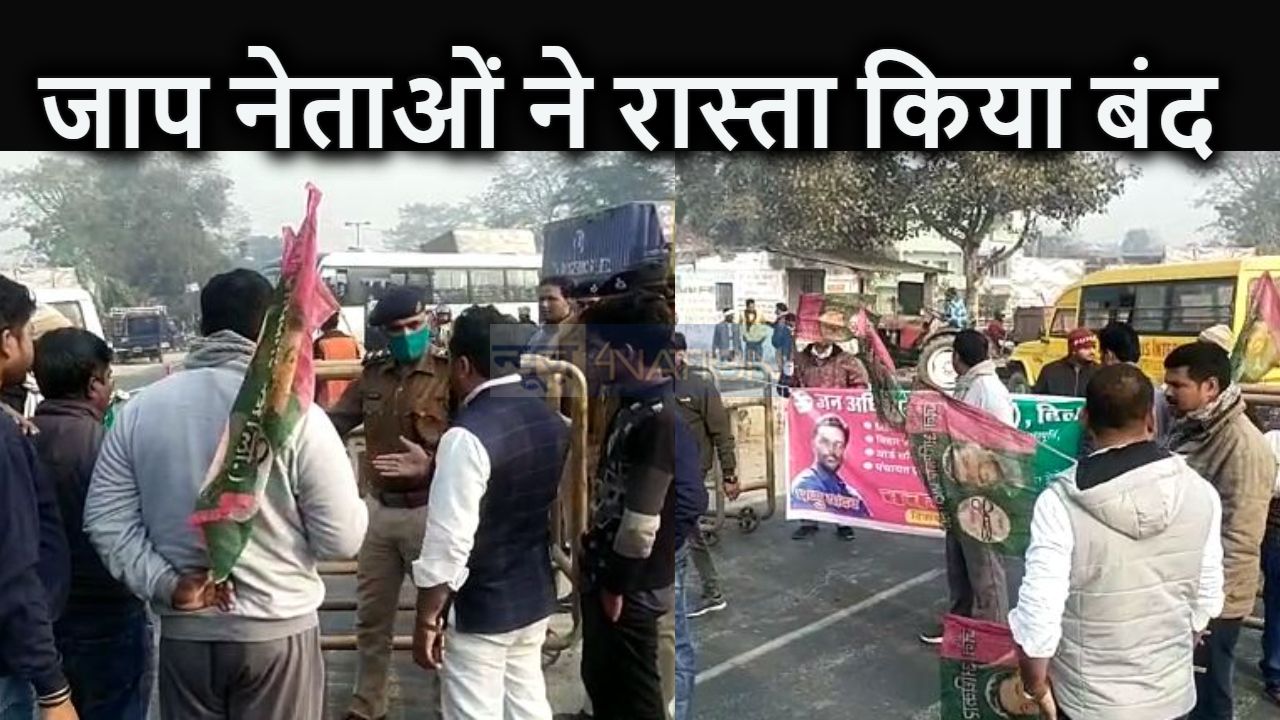हाजीपुर के महात्मा गांधी सेतु के समीप जाप समर्थकों ने सड़क जाम कर भारी विरोध करते दिख रहे हैं, एमएसपी कानून की गारंटी, खाद की आपूर्ति और बिहार के विशेष राज्य की दर्जा, स्थानीय जनप्रतिनिधि के सुरक्षा और अस्थाई नौकरी की मांग को लेकर राज्य सरकार के खिलाफ सड़कों पर पप्पू यादव के कार्यकर्ता सड़क जाम कर टायर जलाकर आगजनी किया और जमकर नारेबाजी कर रहे हैं।