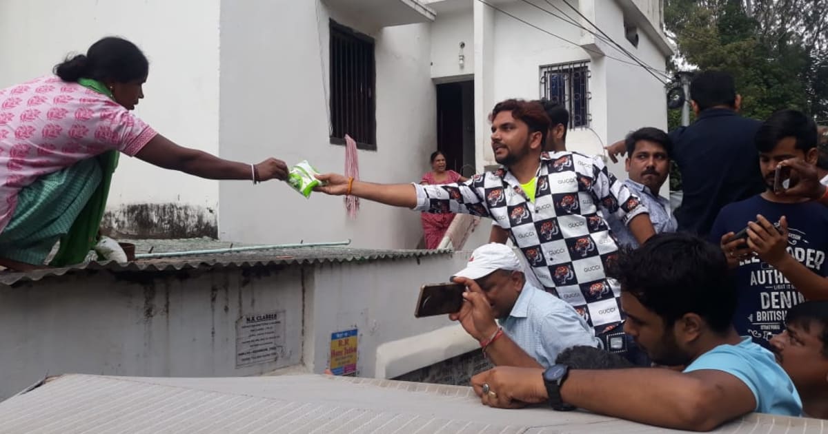 पटना के जलजमाव वाले इलाके में भोजपुरी गायक व नायक गुंजन सिंह द्वारा राहत सामग्री वितरण