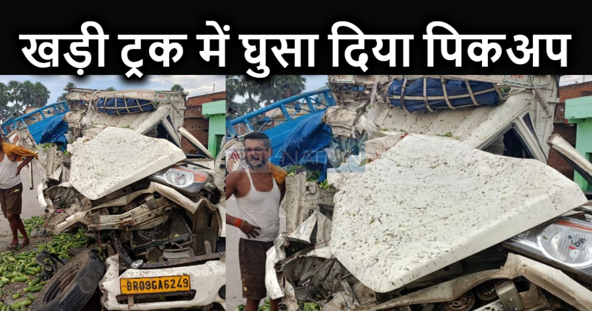 झारखंड से सब्जी लेकर आ रही पिकअप गाड़ी ने खड़ी ट्रक में मारी टक्कर, मौके पर पर चालक की मौत, उपचालक घायल