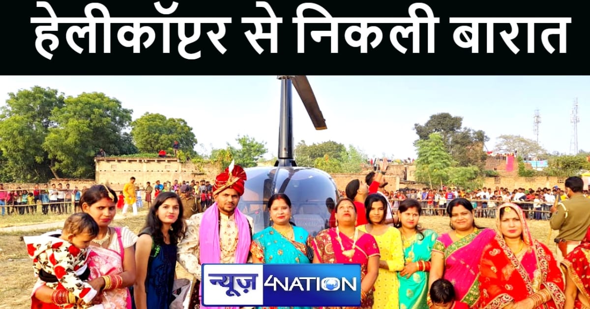 बक्सर में हेलीकॉप्टर से निकली रेलवे इंजीनियर की बारात, देखने के लिए उमड़ी लोगों की भीड़