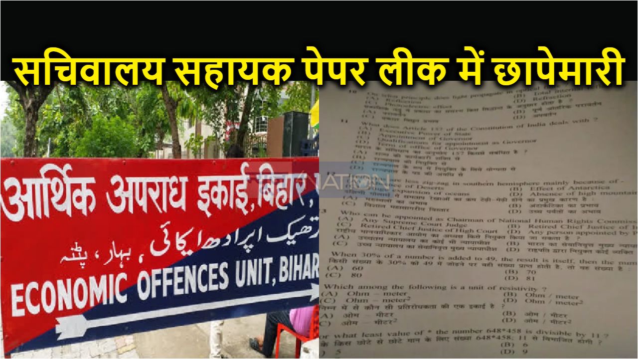 सचिवालय सहायक पद के लिए राज्य के 38 जिलों में दो दिनों तक परीक्षा हो रही है. लेकिन शुक्रवार को परीक्षा शुरू होने के कुछ समय बाद ही प्रश्न पत्र लीक होने की खबर आई. देखते ही देखते लोगों के मोबाइल पर प्रश्न पत्र की प्रति आ गई. मामले की गंभीरता को देखते हुए राज्य के शिक्षा मंत्री ने भी कहा कि अगर प्रश्न पत्र लीक हुआ है तो इसकी उचित जांच होगी और दोषियों पर कार्रवाई की जाएगी. अब उसी क्रम में ईओयू ने मोतिहारी में छापेमारी की.