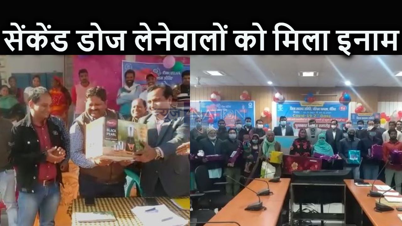 BETTIAH : कोरोना का दूसरा डोज लेनेवालों पर जिला प्रशासन ने इनामों की बारिश कर दी है। लक्की ड्रा के जरिए निकाले गए कूपन में किसी के हिस्से में फ्रीज आया, तो कोई टीवी और मोबाइल फोन लेकर गया। जिलाधिकारी ने बताया कि कोरोना टीकाकरण को जागरुक करने के लिए यह योजना चलाया जा रहा है।