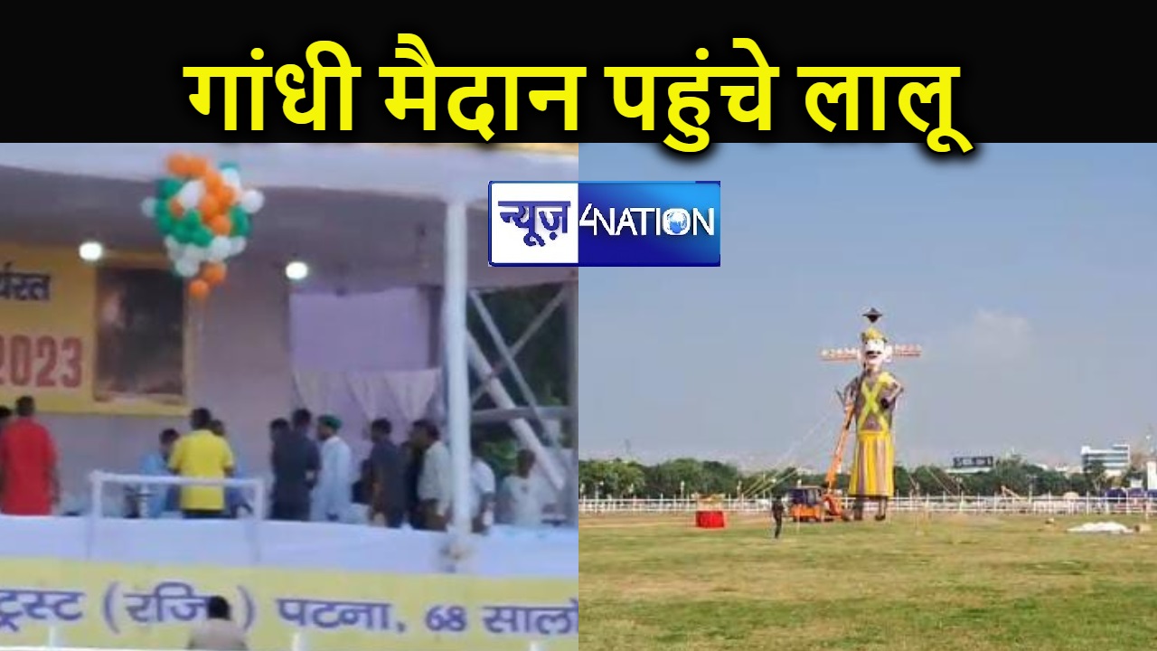बड़े बेटे तेजप्रताप के साथ पटना के गाँधी मैदान पहुंचे राजद सुप्रीमो लालू यादव, रावण दहन कार्यक्रम में होंगे शामिल