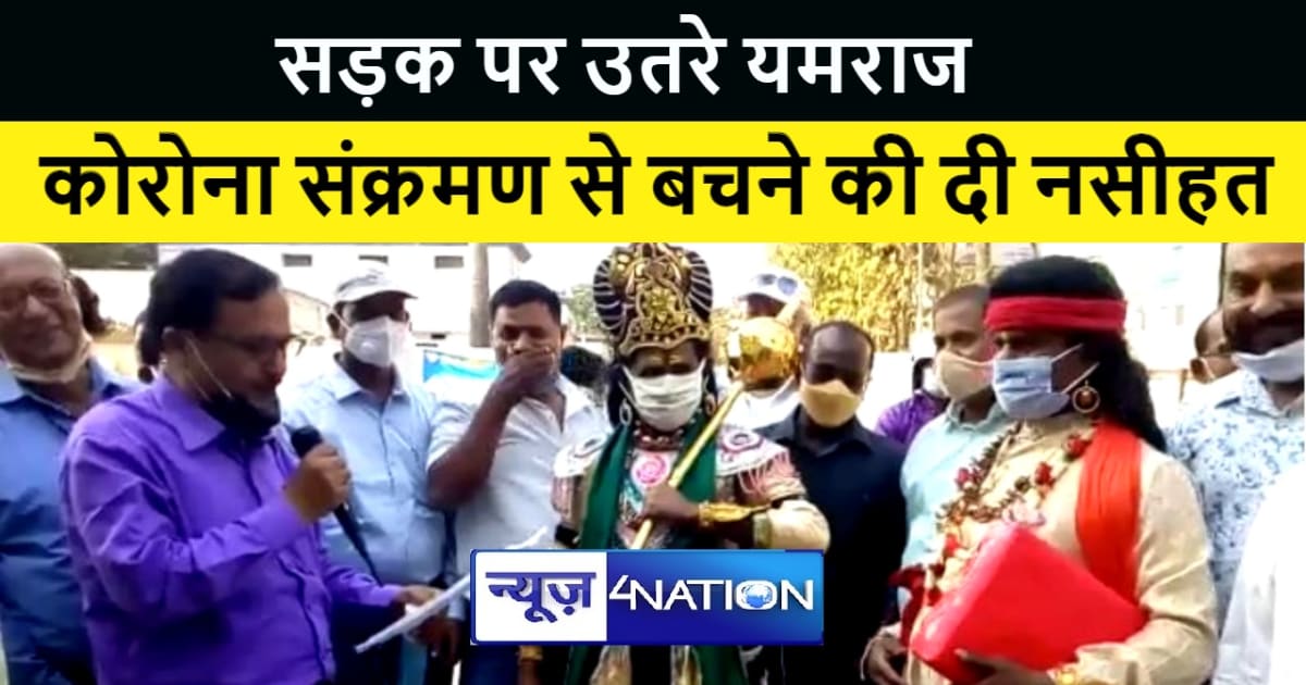 भागलपुर में सड़क पर उतरे यमराज, कहा वेक्सीन लो, मास्क लगाओ, नरकलोक में अब जगह नहीं है