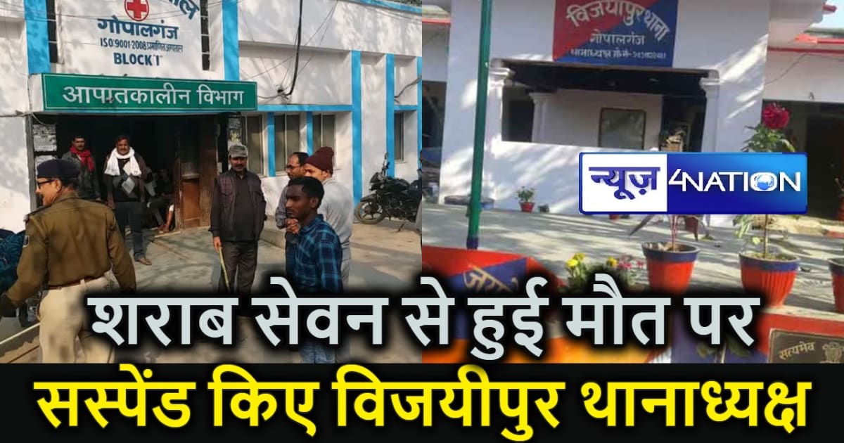 गोपालगंज। जिले के विजयीपुर में दो दिन पहले जहरीले शराब के सेवन से मरनेवालों की संख्या पांच हो गई है, वहीं दो युवकों की आंखों की रोशनी चली गई है। इन मौतों के बाद अब प्रशासन की नींद खुली है और आनन फानन में विजयीपुर थानाध्यक्ष मनोज कुमार को संस्पेंड कर दिया गया है। वहीं उनके साथ चौकीदार अमरेश यादव को भी निलंबित कर दिया गया है। फिलहाल संजीत कुमार को विजयीपुर को प्रभार दिया गया है। उक्त कार्रवाई एसपी ने की है।