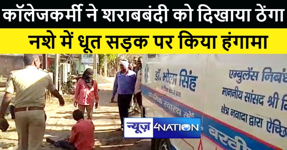 बिहार में शराबबंदी कानून को "पियक्कड़" कॉलेजकर्मी ने दिखाया ठेंगा, नशे में धूत घंटों सड़क पर किया हंगामा