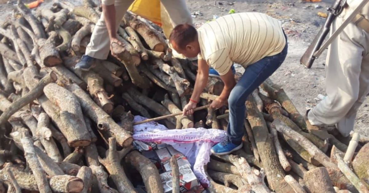 शराब माफिया के खिलाफ पुलिस की कार्रवाई, अंतिम संस्कार के लिए रखे लकड़ी के बीच से शराब को किया बरामद