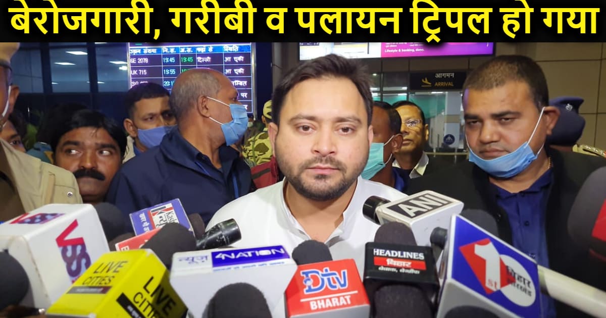 पटना पहुंचे तेजस्वी यादव : नीतीश कुमार के 16 सालों पर साधा निशाना, बोले- डबल इंजन की सरकार में बेरोजगारी, गरीबी और पलायन ट्रिपल हो गया
