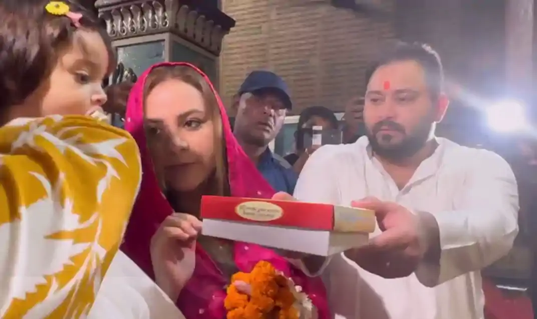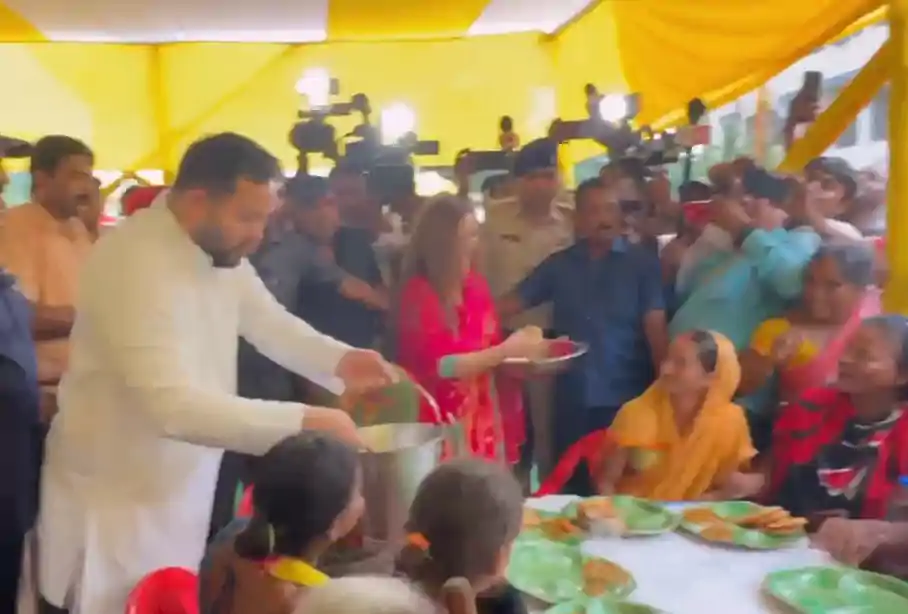 पत्नी राजश्री के साथ तेजस्वी यादव ने लोगों को भंडारे का खाना पुरी-सब्जी खिलाया। इस दौरान उनकी एक वीडियो भी सोशल मीडिया तेजी से वायरल हो रही है। इस वीडियो में दिखा जा रहा है कि तेजस्वी यादव पंचरुपी हनुमान मंदिर में पूजा कर रहे हैं। पुजारी ने उन्हें माला पहनाया। जिसके बाद उन्होंने पत्नी के साथ लोगों को भंडारा खिलाया।