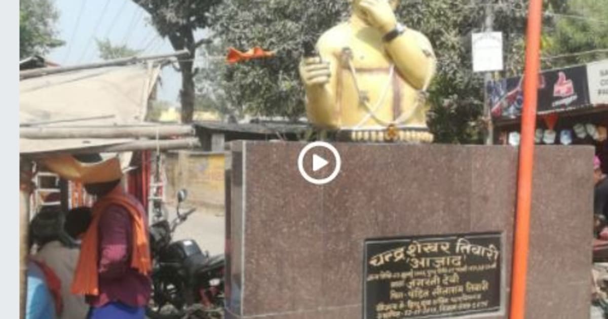 इस चौराहे पर पिछले साल 7 जुलाई को स्वतंत्रता सेनानी और शहीद चंद्रशेखर आजाद की एक प्रतिमा लगाई गई, जिसमें उनके नाम में जातिसूचक ‘तिवारी’ लगाया गया। प्रतिमा लगाने वाले संगठन हिंदू युवा शक्ति के मुताबिक इसमें कुछ भी गलत नहीं है। प्रकाश पांडिया इस संगठन से जुड़े हैं। इसी चौक पर पिछले 7 साल से मोबाइल दुकान चला रहे हैं।इसी साल जुलाई में हिंदू युवा संगठन ने यहां चंद्रशेखर आजाद की प्रतिमा लगाई है।