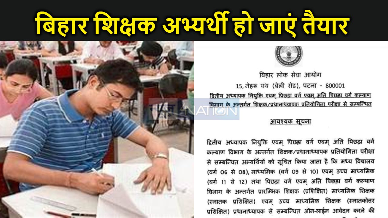 बिहार में शिक्षक भर्ती की दूसरी परीक्षा के लिए आ गई आवेदन की तारीख , इस बार कक्षा 6 से 8 के लिए भी होगी नियुक्ति,1.10 लाख पदों पर होगी बहाली