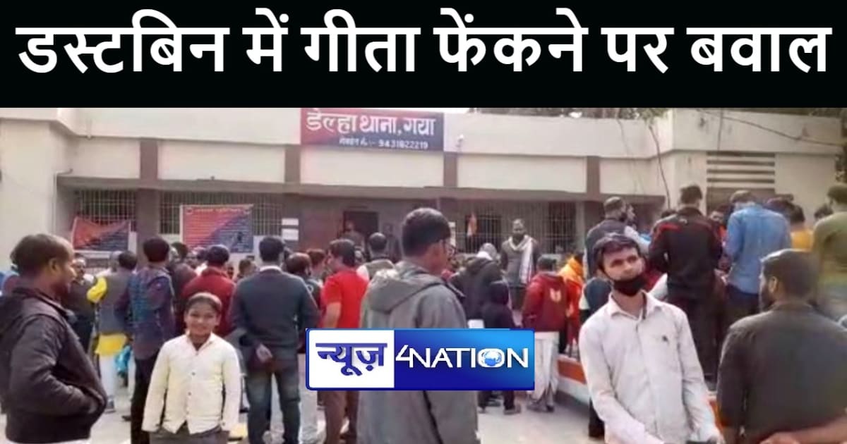 GAYA : बिहार के गया जिले में हिन्दू समुदाय के धार्मिक ग्रंथ श्रीमद्भागवत गीता को एक अल्पसंख्यक शिक्षक द्वारा डस्टबिन में फेंके जाने का मामला अब राजनीतिक तूल पकड़ने लगा है। गया के डेल्हा थाना का आक्रोशित उग्र लोगों ने घेराव करते हुए जोरदार प्रदर्शन किया। इस मौके पर लोगों ने आरोपी शिक्षक के खिलाफ कार्रवाई किये जाने की मांग की।