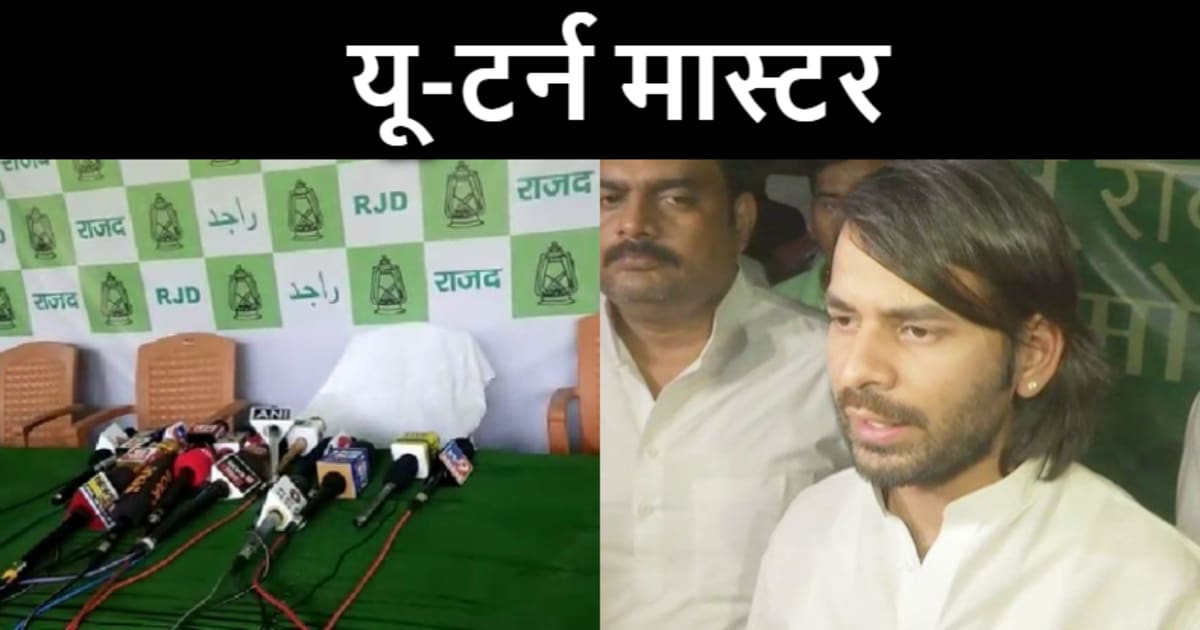यू-टर्न मास्टर बन गए तेजप्रताप, प्रेस कॉन्फ्रेंस के बहाने अपने परिवार को ब्लैकमेल करने की कोशिश !