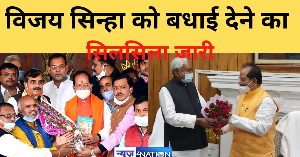 बिहार विस के नवनिर्वाचित अध्यक्ष विजय सिन्हा को बधाई देने का सिलसिला जारी, BJP मीडिया प्रभारी राजेश झा राजू ने किया सम्मानित